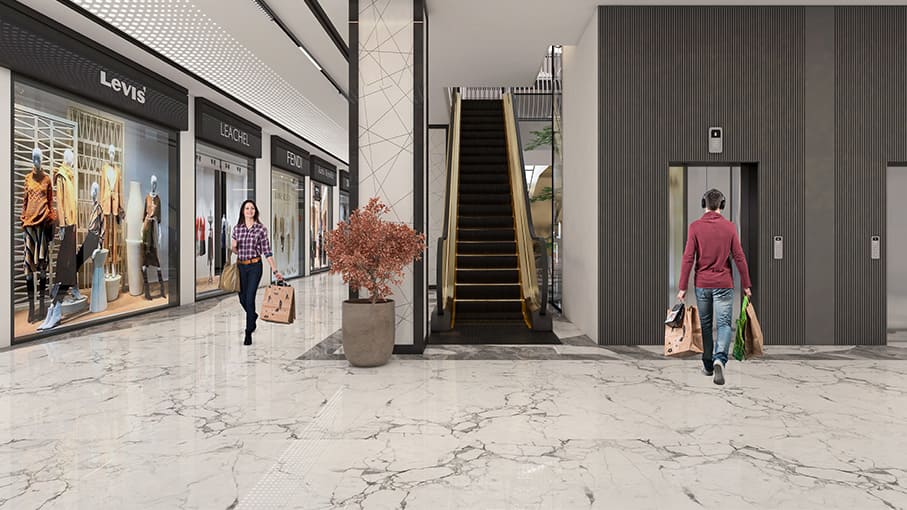 - High-Speed Elevators & Escalators: Seamless vertical circulation throughout the mall.