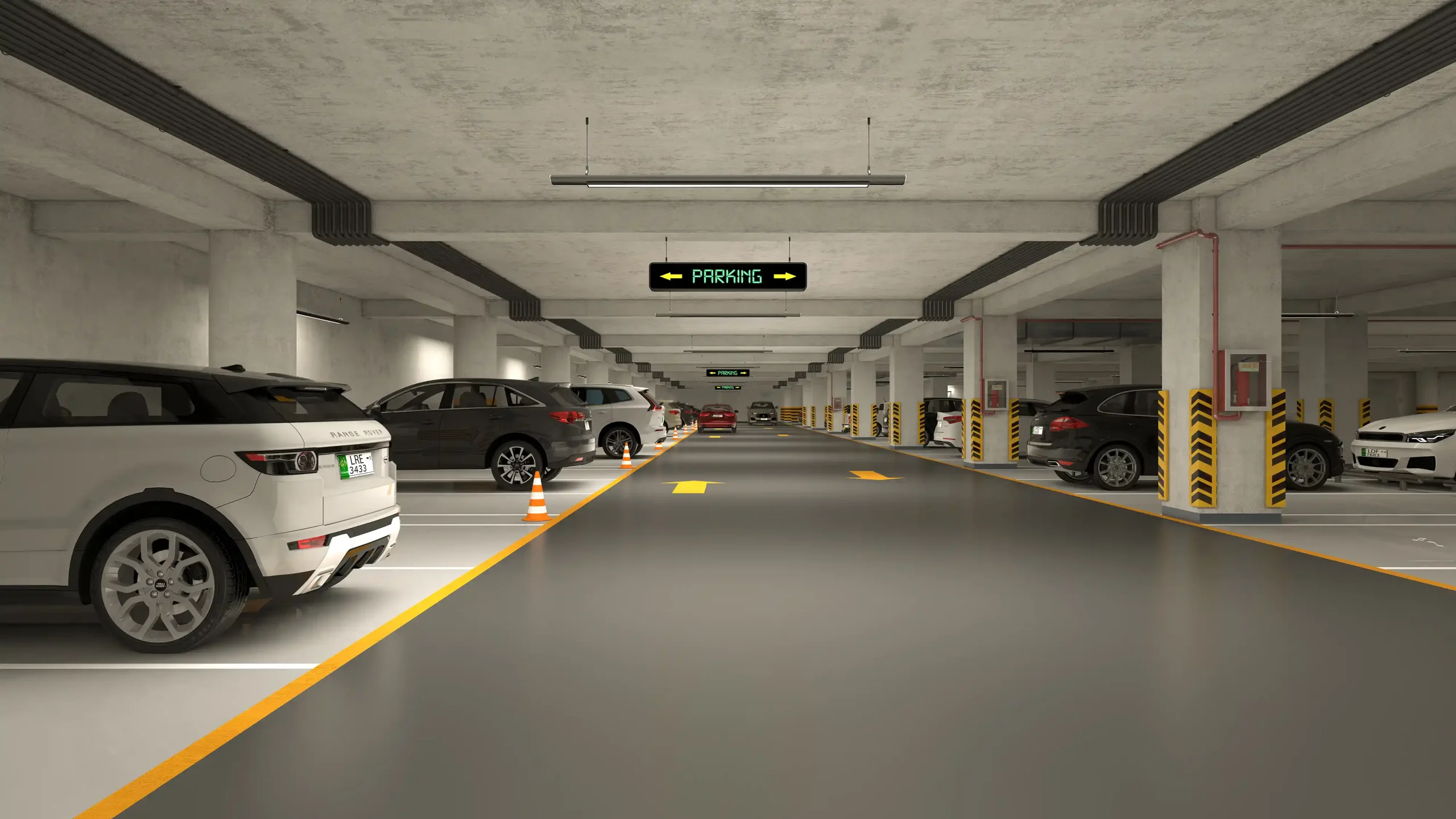 Yes, the project includes multiple dedicated parking floors inside the basements and outside the building with anti-theft digital parking mechanisms.