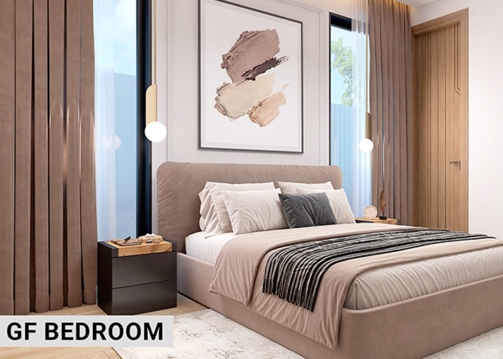 Bedrooms with a modern and luxurious design are built for comfort with large closets and designated storage areas planned in these villas.