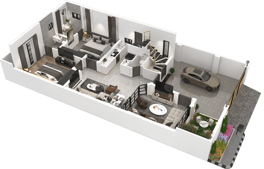 Party! In these 8 marla villas with the most spacious living rooms. Kitchens equipped with the best standard equipment in the market.